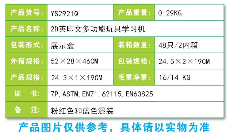 YS2921Q 2D英印文多功能玩具学习机