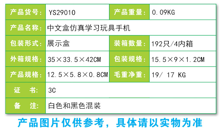 YS2901O 中文盒仿真学习玩具手机